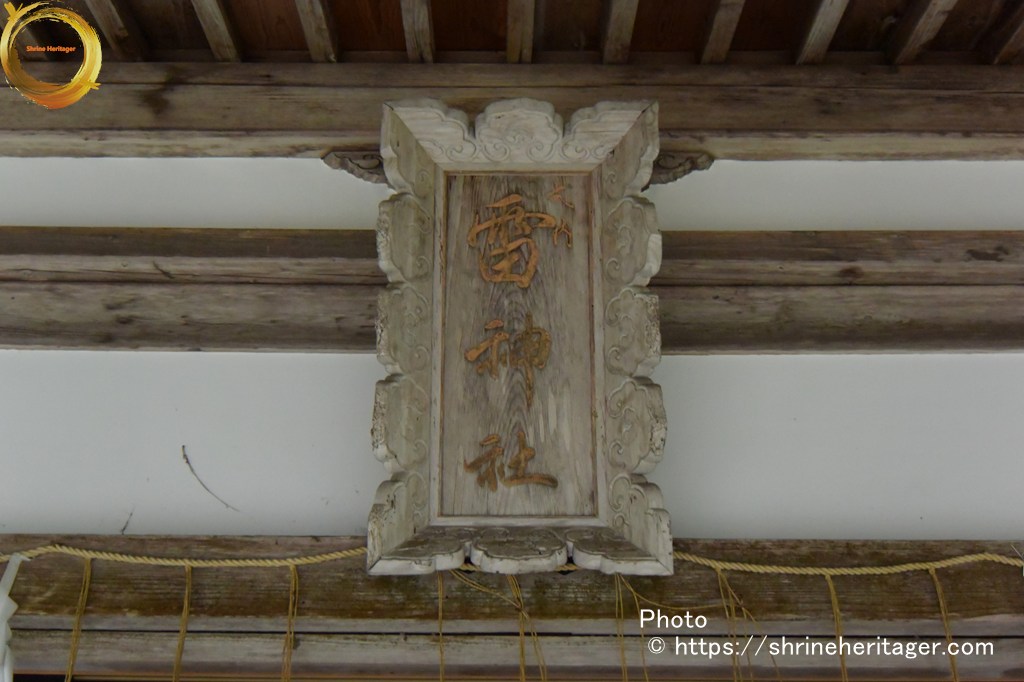 『越前國官社考』では「雷神社は祭神 山雷神にて又ノ御名 大山祇命と申し 大虫大神の御外親成たれば ともに丹生獄に座しが垂仁天皇の御宇 御遷座の砌 御本宮の巽五丁を隔て、御社を建て祭りしが殊更 神異赫々たるより 清和天皇 貞觀三年四月朔日 官社の列に加へられ 廣瀬村にて三十町の田を附せられ〔此村 雷社の御領所たるにより遥拝所を建て氏人等祭りしが今も当村に其拝所あり。〕とする。