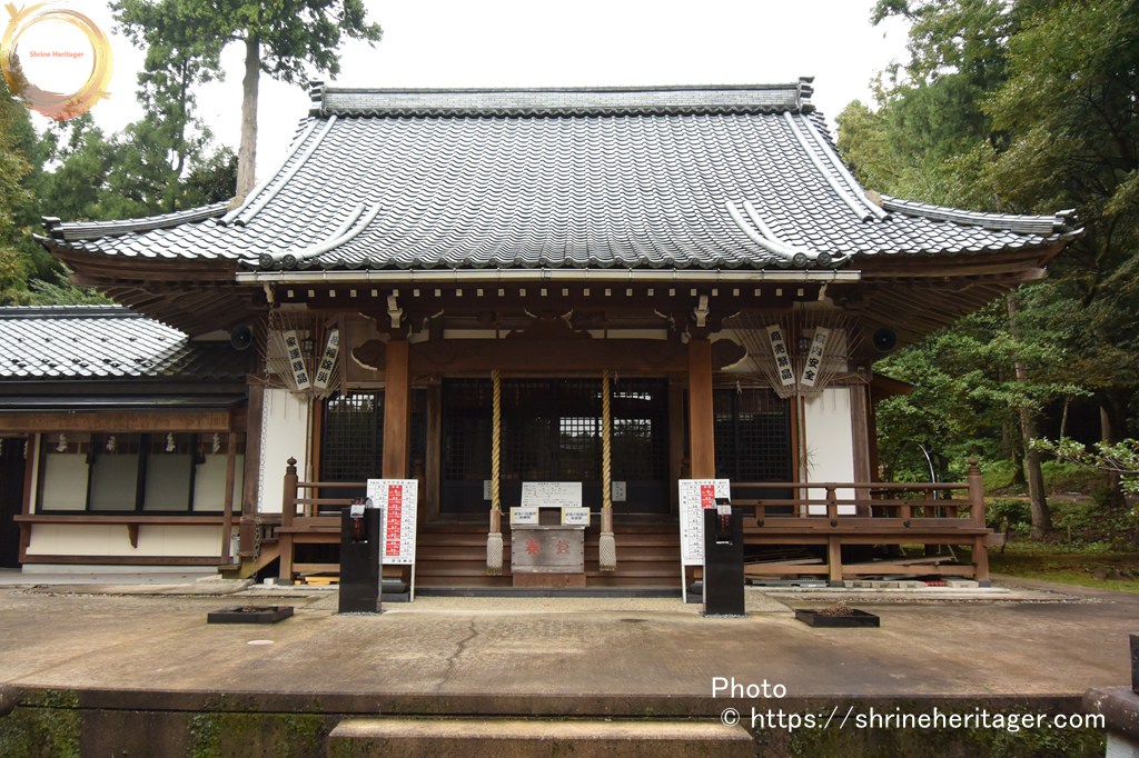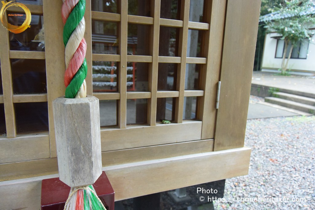 江戸時代前期の寛文九年 (一六六九)に造営された。社殿部一間四方の「流れ造り (屋根の一方が、正面前方に長くのびている。)」の小社で、上部にすかし彫りの彫刻が入っている。全体に、中世の神社建築の趣を残している