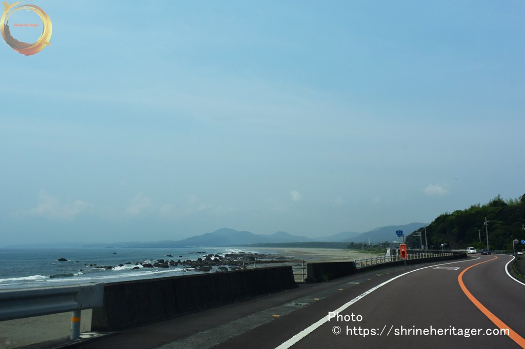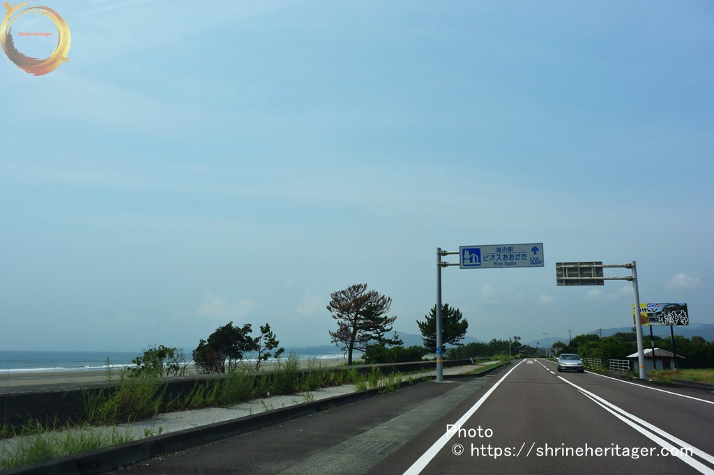 道の駅の駐車場から 海岸線 入野松原を抜ける道があり ここを進みます