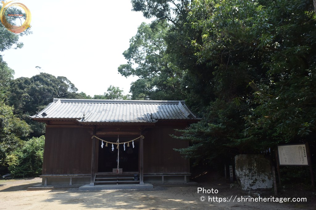 然れども祭神につき異説あり、即ち神祇志料は味耜高日子根神と祭るとせり、神社覈録は祭神不祥にして 入野村松原八幡宮相殿に在すとなす、共に揭げて後考に備ふ。