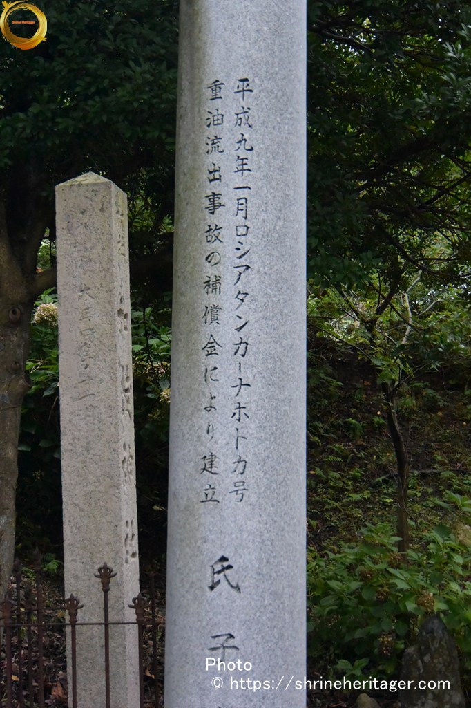 「平成九年一月ロシアタンカー ナホトカ号 重油流出事故の補償金により建立」と刻まれていました