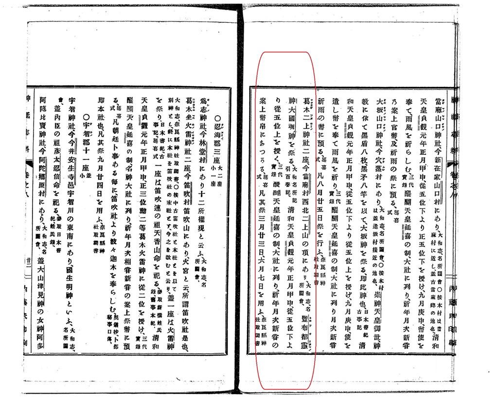 『奈良県史』第五巻 神社.平成元年に記される内容
