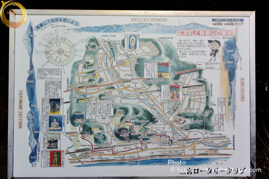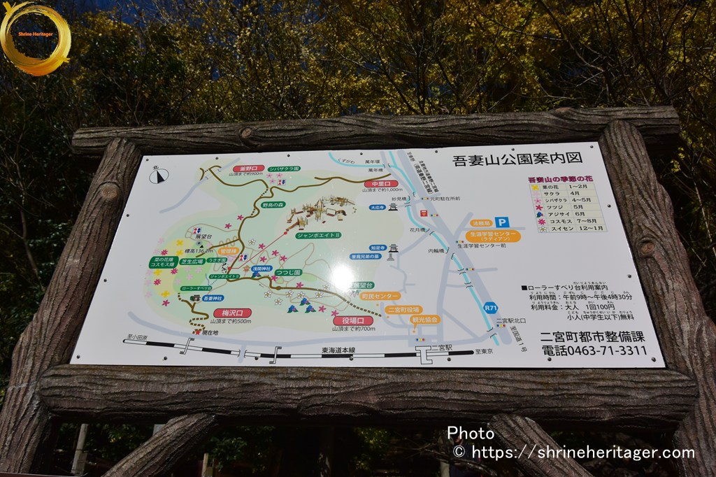 二宮町と吾妻山の展望 のマップがあり すぐ近くに 日本武尊のゆかりの吾妻神社があるようなので向かってみました