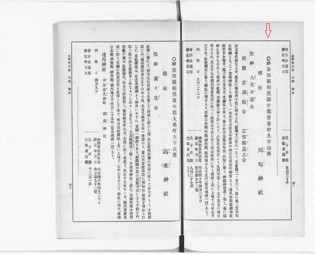 大住郡川勾村の隣邑 山西にあり、二宮明神と云ふ、〔巡拝舊祠記、足柄縣式社考証〕