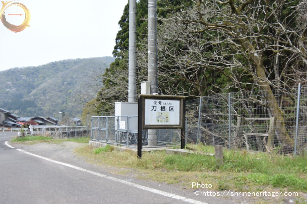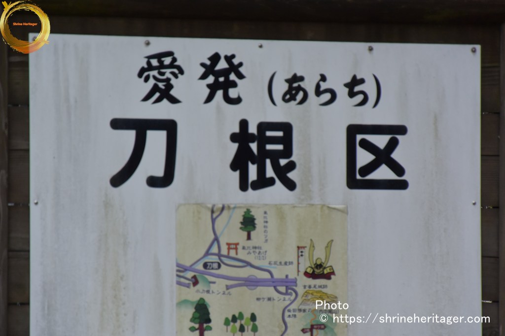 ちょうど北陸自動車道の刀根PAの北側辺りに「刀根区 愛発(あらち)」の地区案内板があります