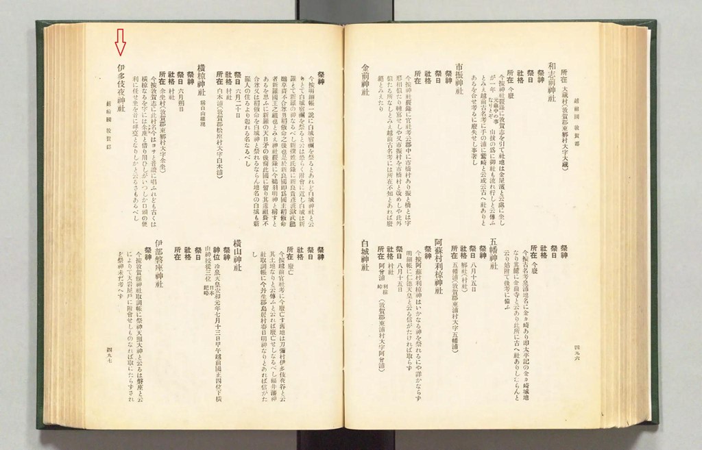 その中でも巻9・10を『延喜式神名帳(Engishiki Jimmeicho)』といい 当時〈927年12月編纂〉「官社」に指定された全国の神社(式内社)の一覧となっています