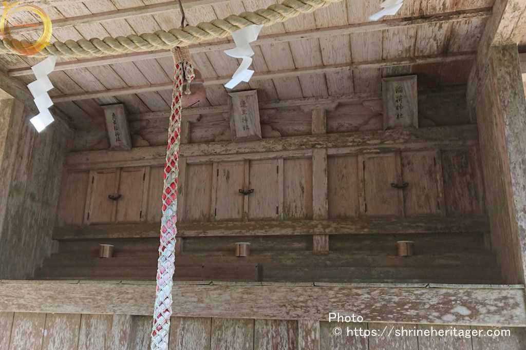 また「三輪神社・祭神大物主神」については、創立年代は不詳なれど、慶応月の記録に山王大神・祭神大物主神とあり、明治一七日「三輪神社・祭神大物主神」と改号され「木積神社」に配祀されている。
