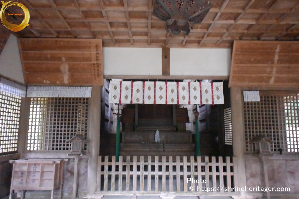 社殿、拜殿、舞殿、神與藏、社務所等はり、境内末社稲荷、狹田彦、速玉諸社あり 氏子二百三十戸 明治六年二月村社に列せられ 大正九年二月三日 神饌幣帛料供進指定、祭典五月ー日。