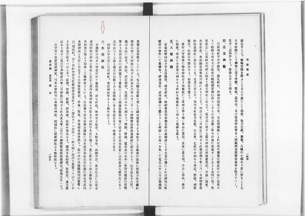 式内社 木積神社について 所在は゛(中郡五箇村大字久住)゛〈現 木積神社(京丹後市大宮町久住)〉と記されています