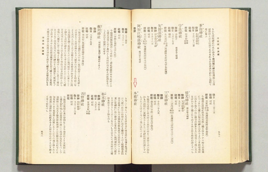宮津藩寺社名前御取調帳に弓木村美和社 島谷佐渡の條見ゆ 式内 木積神社を久住に比定するは丹後舊事記、丹後一覧集、丹後細見録 皆然り、