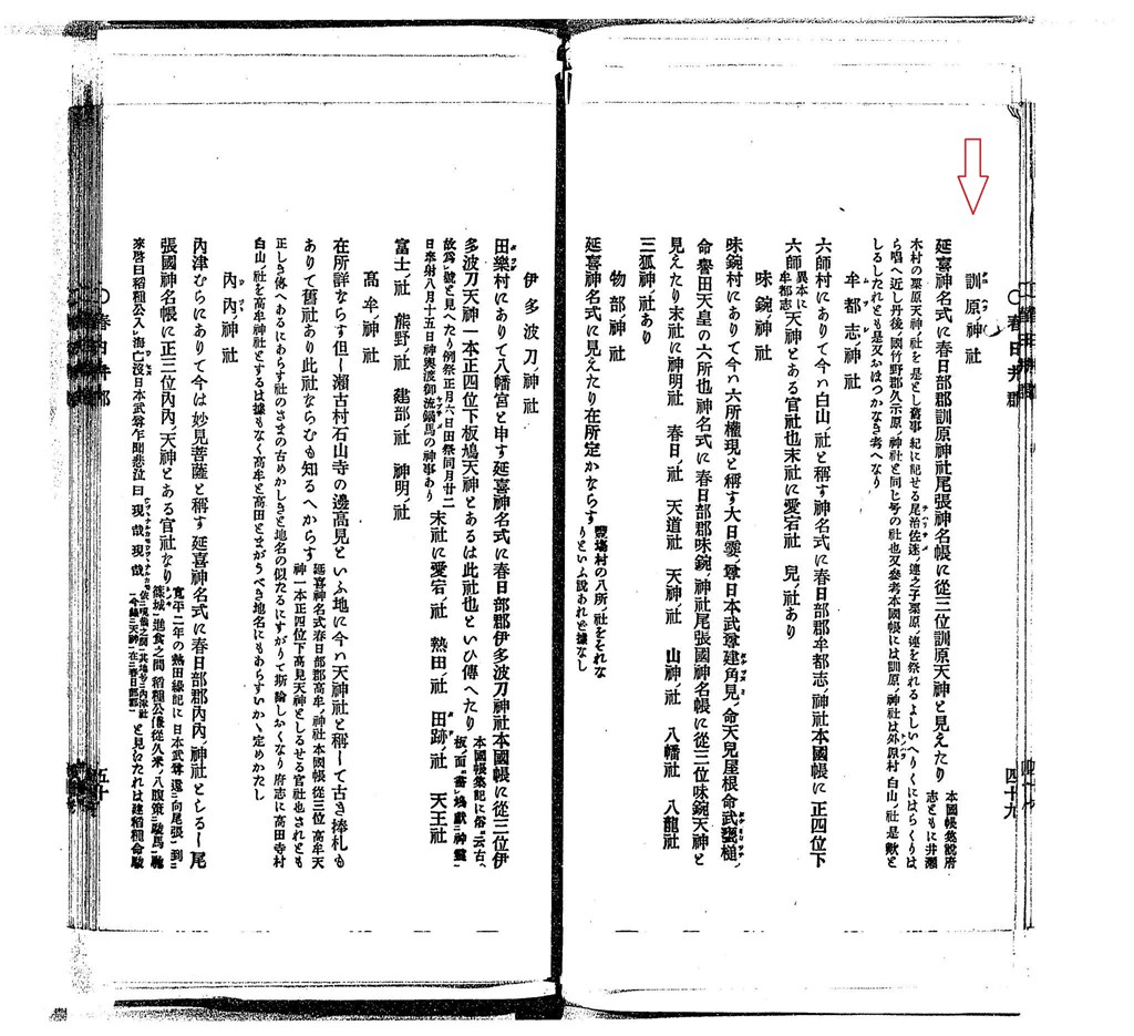 その中でも巻9・10を『延喜式神名帳(Engishiki Jimmeicho)』といい 当時〈927年12月編纂〉「官社」に指定された全国の神社(式内社)の一覧となっています