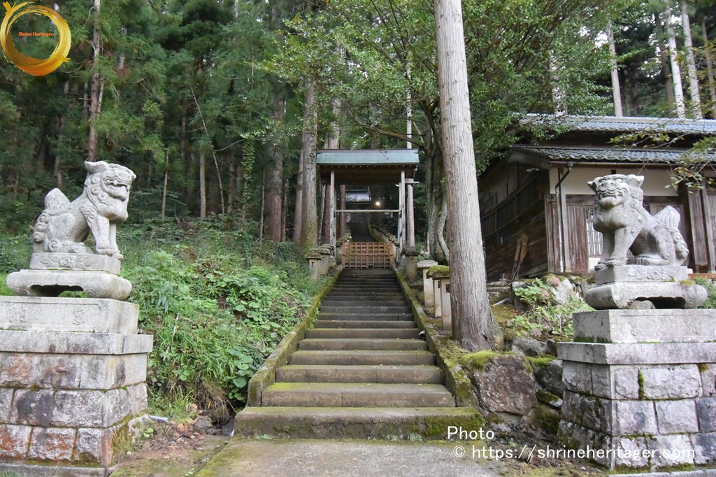 国中神社(くになかじんじゃ)は 元は 当社の北西にある三里山の山上に二座が鎮座しており 七堂伽藍を具備し 奉仕の社僧も多かったが 延元天正數度の兵燹に罹り 悉く焼亡してしまった 当郡一の大社であったと云う 延喜式内社 越前國 今立郡 國中神社二座(くになかの かみのやしろ ふたくら)とされます