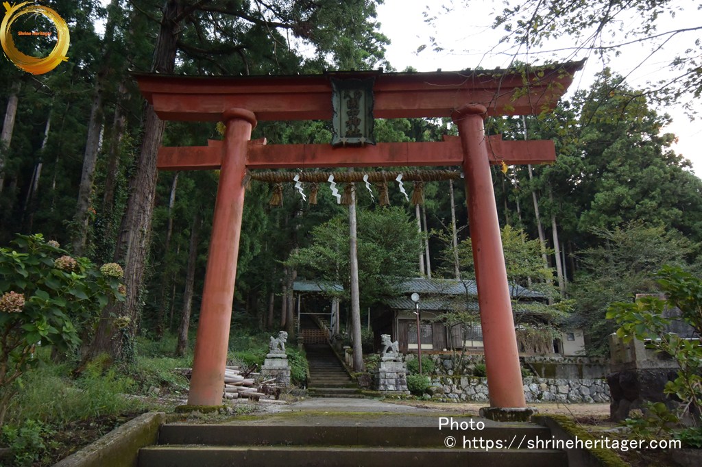 覈録には、「祭神不詳、〔官社考に、伊邪那岐神 伊邪那美神二座と云り、今従はず、〕北中津山村に在す、」とありて、