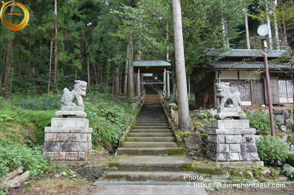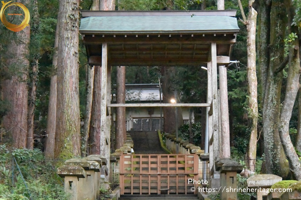 参道の石段の中間辺りに 山からの獣除けの柵が張られていて 神門にも板戸が設置されています