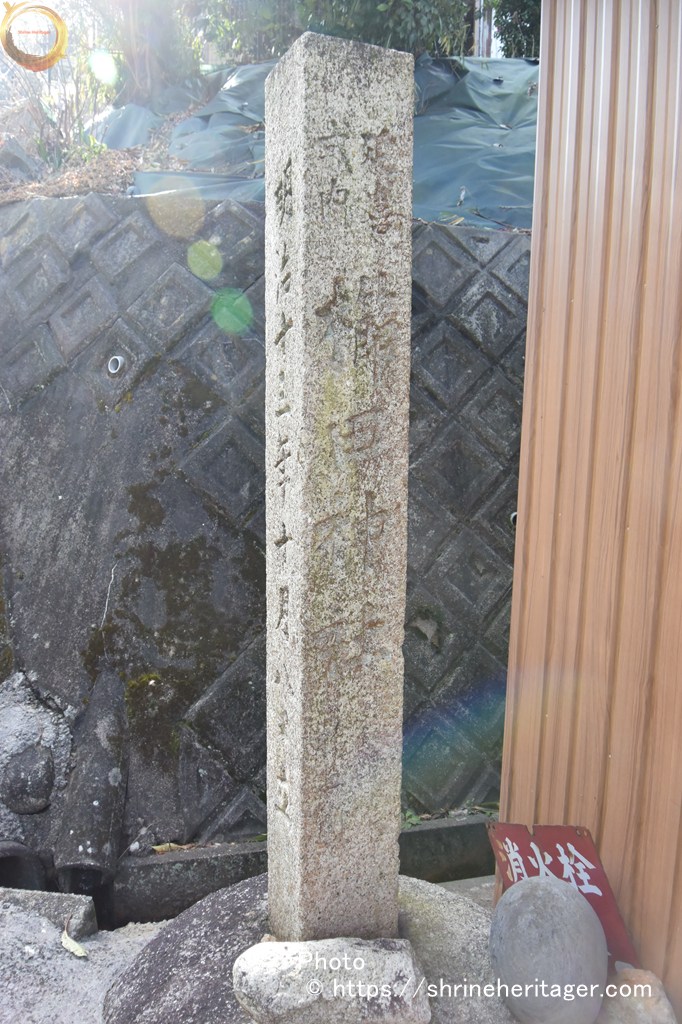 櫛田神社(桑名市島田)は 明治42年(1909)12月8日平群神社に合祀 後 昭和27年(1952)12月 平群神社から分祀して現在に至る この間に建てられていた石碑だと想われます