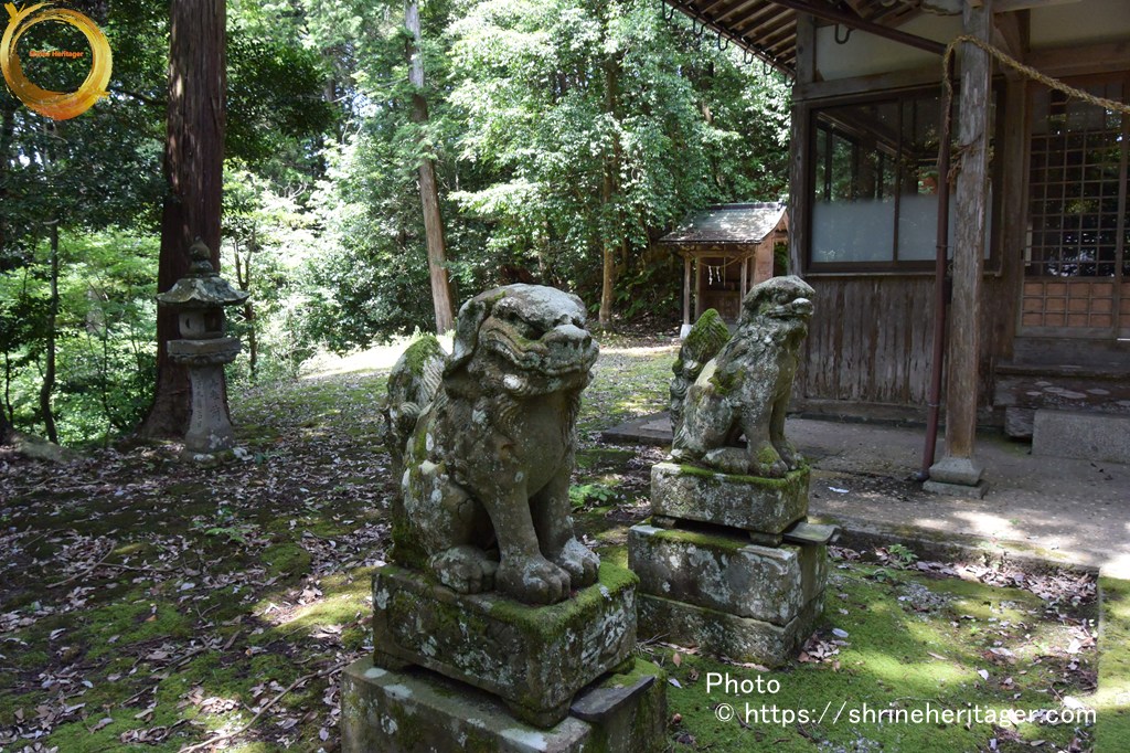拝殿の前には 石灯籠 二対の狛犬が座しています