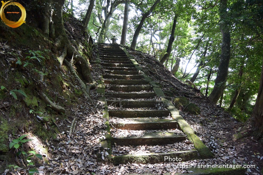 石段を上がるとすぐに石灯籠があり 参道石段は つづら折れになって山を上がって行きます