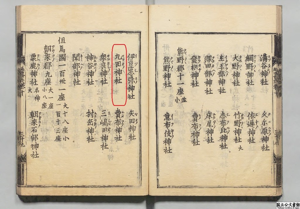 『延喜式神名帳(Engishiki Jimmeicho)』(927年12月編纂)に所載〈This record was completed in December 927 AD.〉