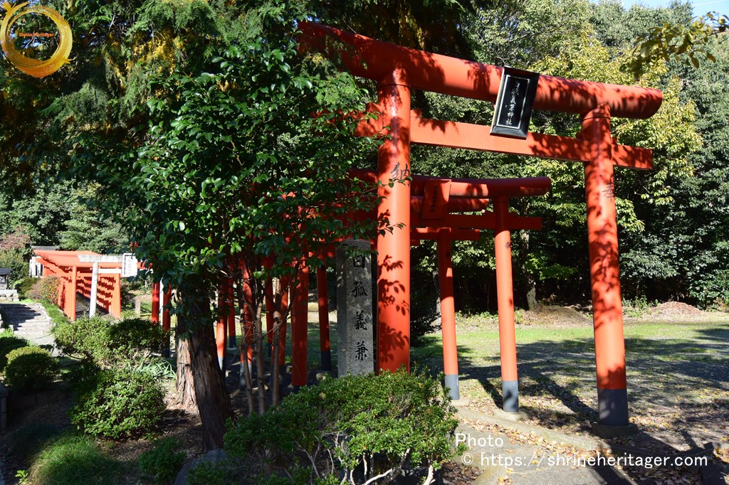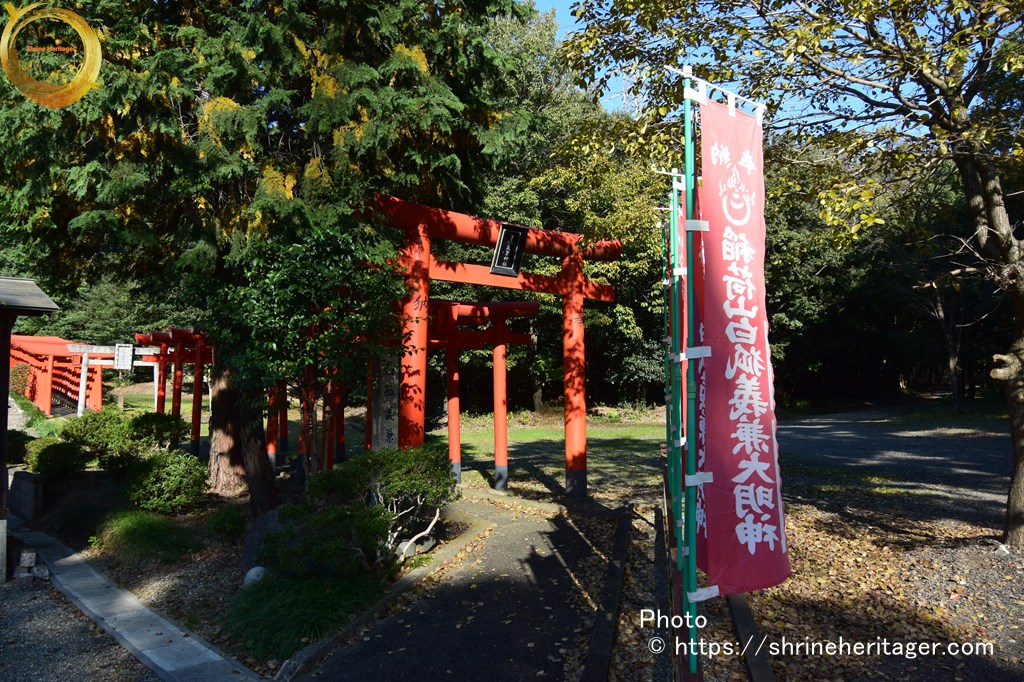 向かって右奥には 稲荷の赤鳥居が見えています