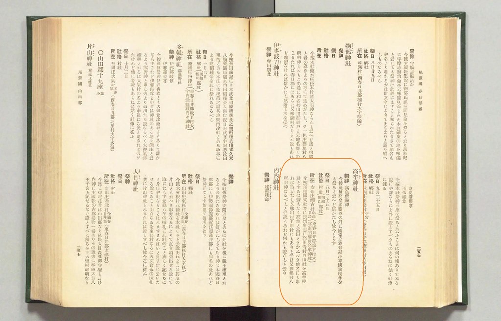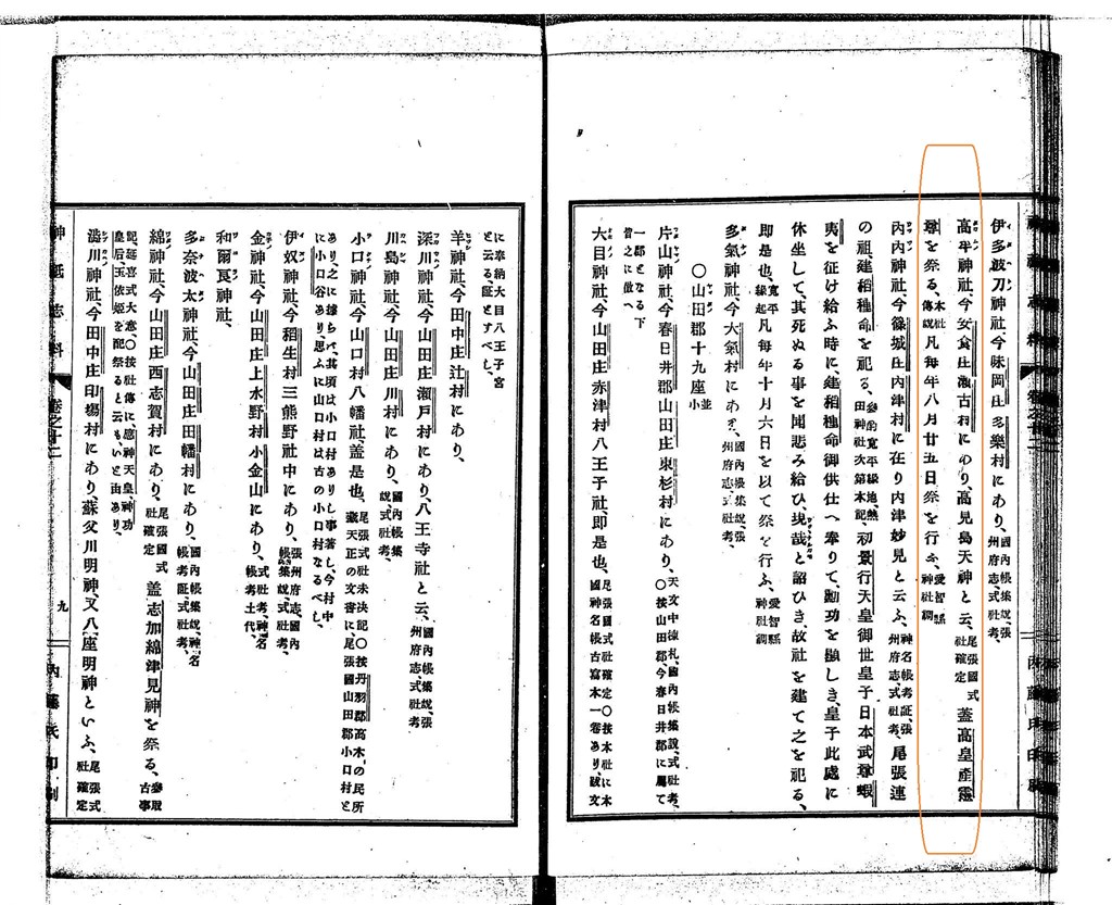 「タカムノ神社」とよむ。ただし、『尾張國神名帳』は、高見神社としてゐる。これ以外に、異はみえない。