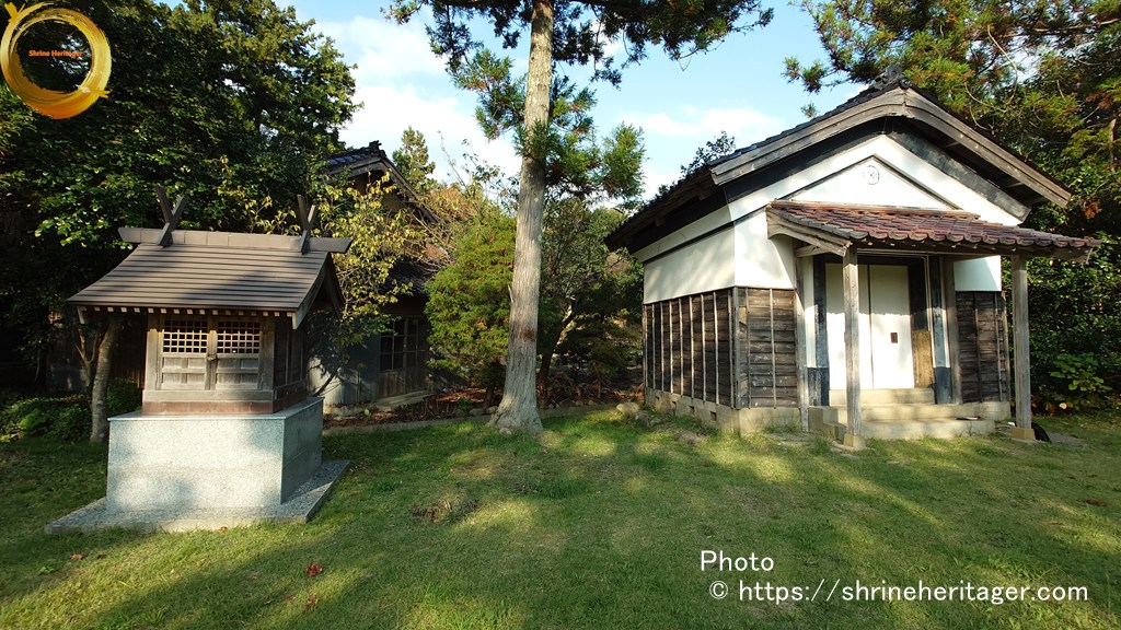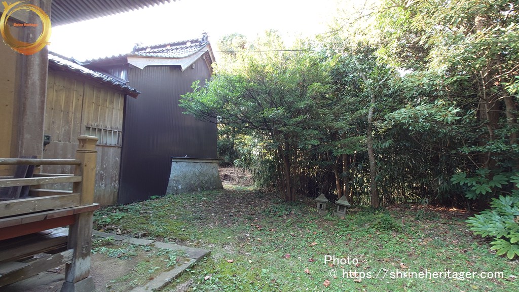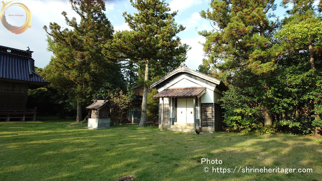 境内の向かって右手には神庫と境内社が祀られています