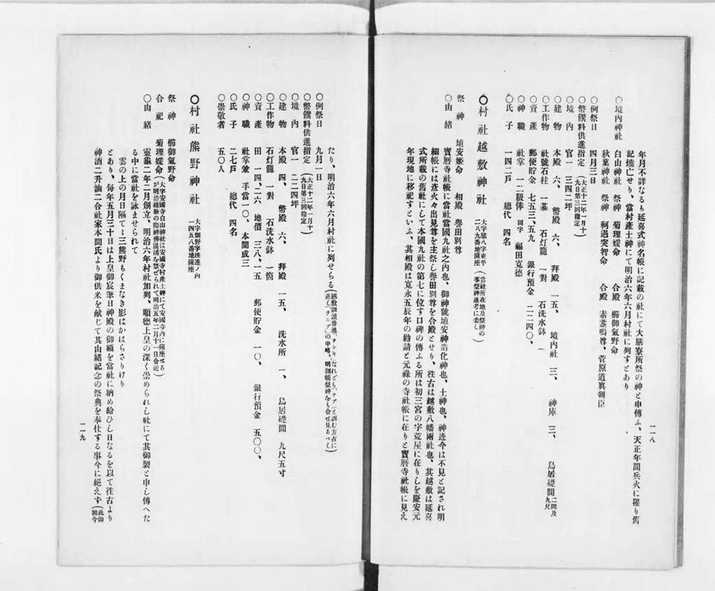 社格 村社所在 後山村(佐渡郡畑野村大字後山)