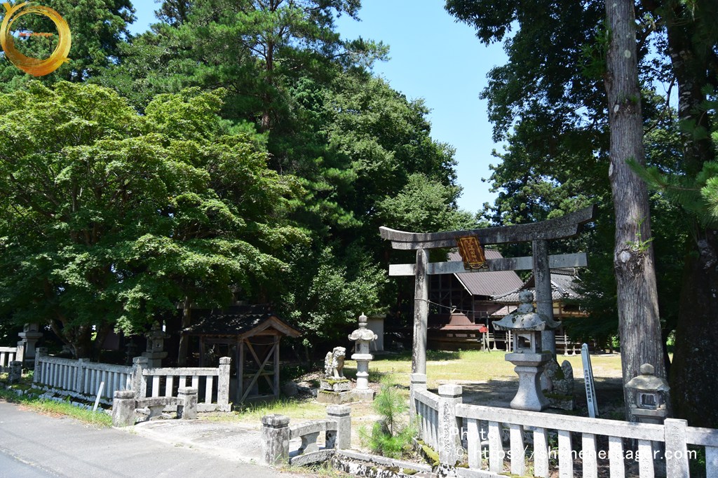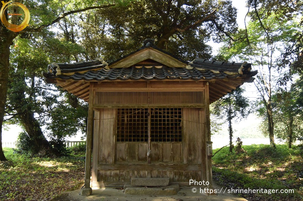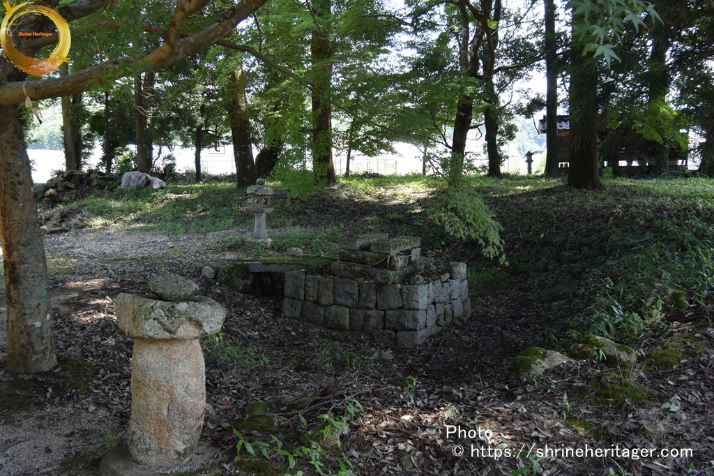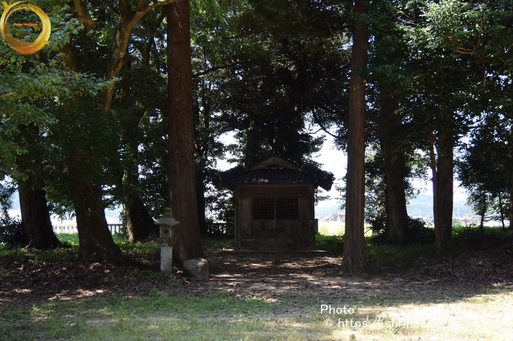 而して當社の別當としては神宮寺あり、廃絶して字海士 寶珠寺に合併せりといふ。神社の東三町程にしてジンゴの森あり。神宮の森にして神宮寺の遺跡たり。此の神宮寺 存立の年代等詳記せるものなく正確に知るを得ざれど、元境内に安置せる釋迦観音地蔵の三石佛あり、維新後 境外に移転せるものにて、右石佛の裏面に神宮寺六十六部供養とあり、片書に永享十二年庚甲六月十九日とあれば、神宮寺 存立の年代を推察するに足る。永享十二年は今を距る事四百八十年前にして、神宮寺は當社の別當たりしなり。