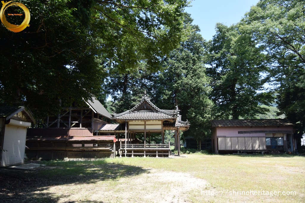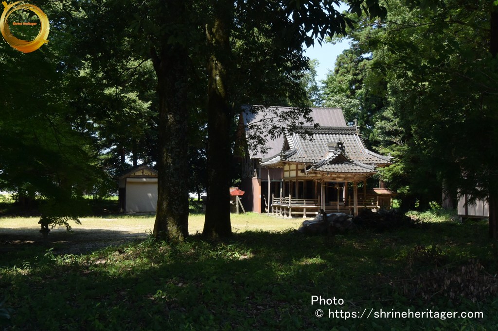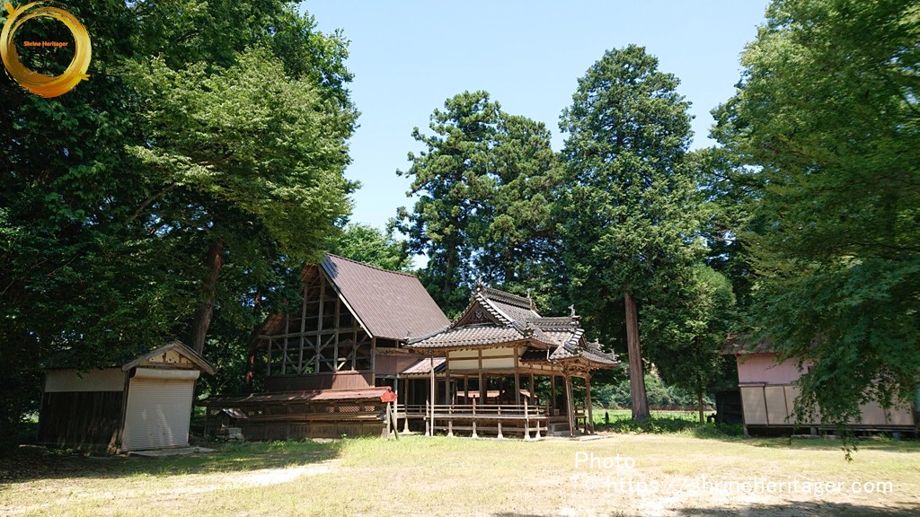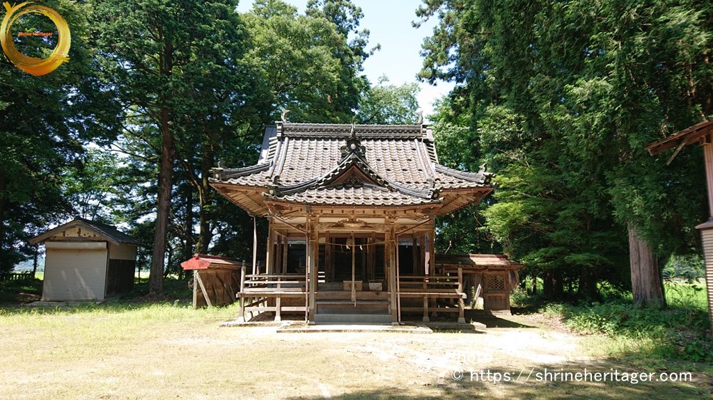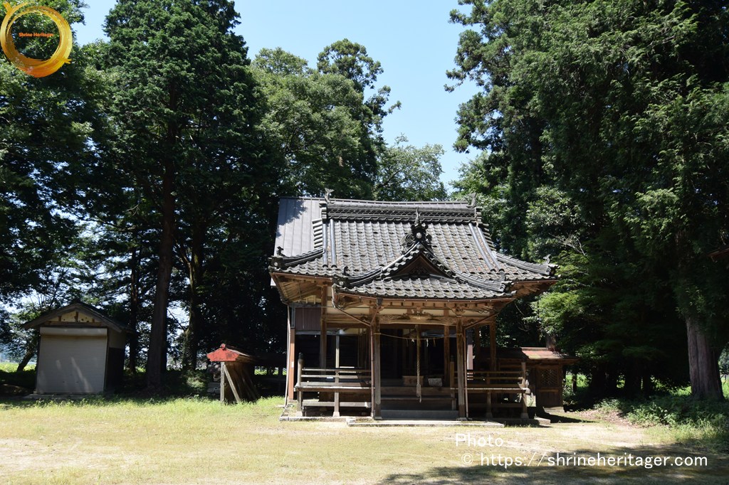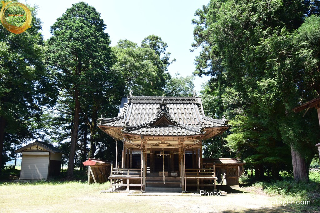 大正二年十月神饌幣帛料供進神社として指定せらる。一 本殿 入母屋造三年社千鳥破風向唐破風向拜付欅材勾欄付屋根クレ板葺 建坪八坪七合六勺