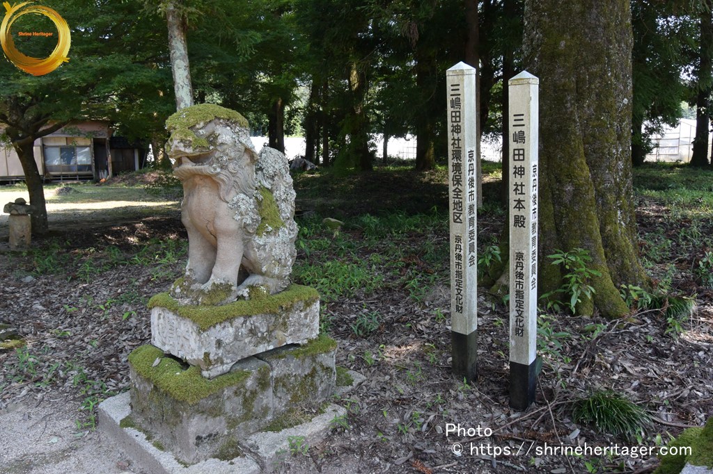 式内社にして其の創立最も古く、丹後一覧記 丹後舊事記等によるに、垂仁天皇の代 川上摩須の勧請に係れるものにて、寶永三年の銘ある鳥居には、三島大明神と刻し、文政十二年の棟札には三島田明神と記し 往古は三島明神にして後世 三島田明神と改稱せるものの如し、