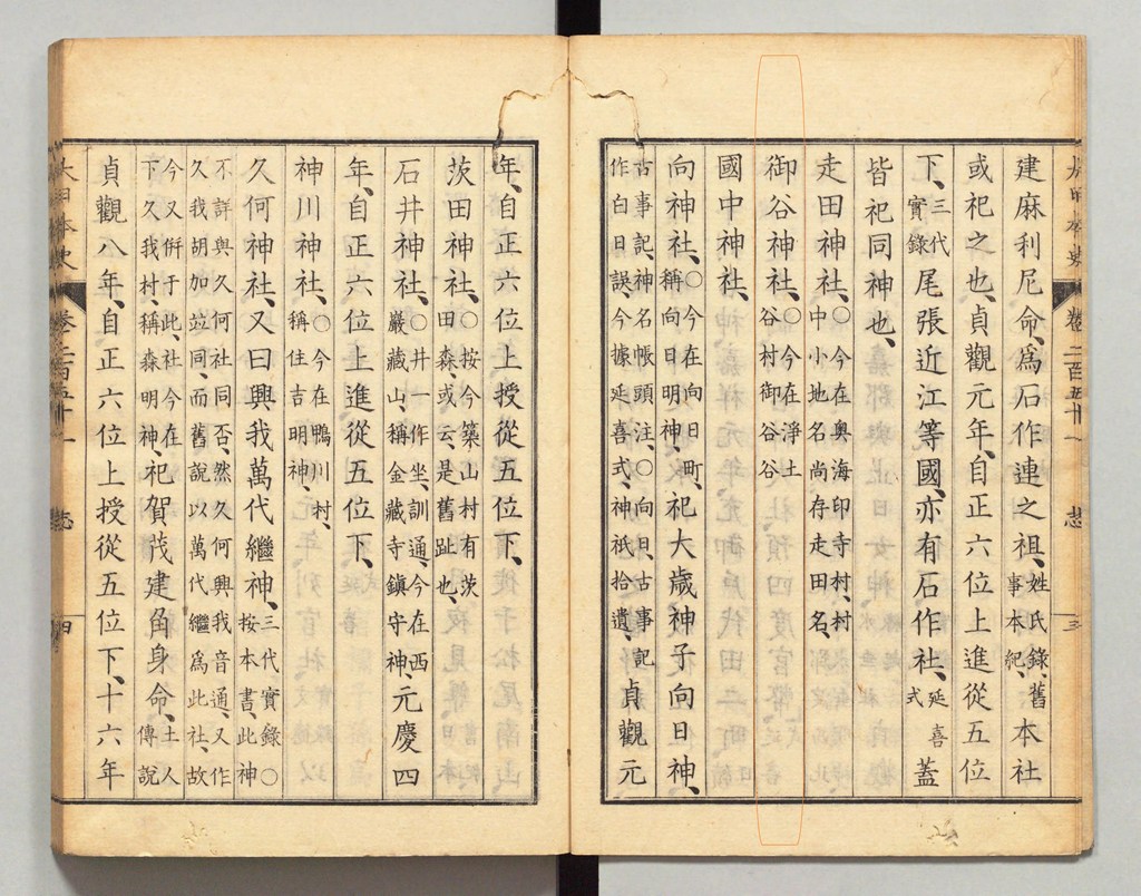 その中でも巻9・10を『延喜式神名帳(Engishiki Jimmeicho)』といい 当時〈927年12月編纂〉「官社」に指定された全国の神社(式内社)の一覧となっています