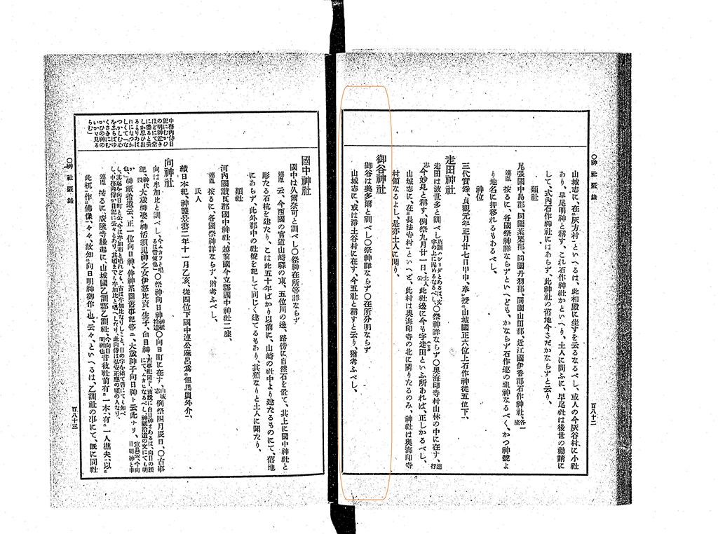 式内社 御谷神社について 所在は゛今 淨谷村にあり五社といふ、゛〈現 御谷神社(長岡京市浄土谷宮ノ谷)〉と記しています