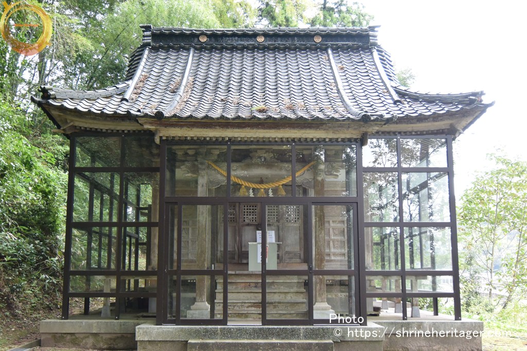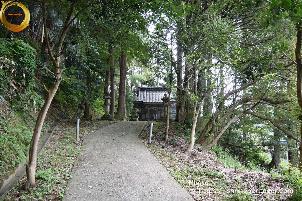 守山村、大字東海老坂村に在り。村社にして、字摩志摩遲命を祀る式内神社の一なり、