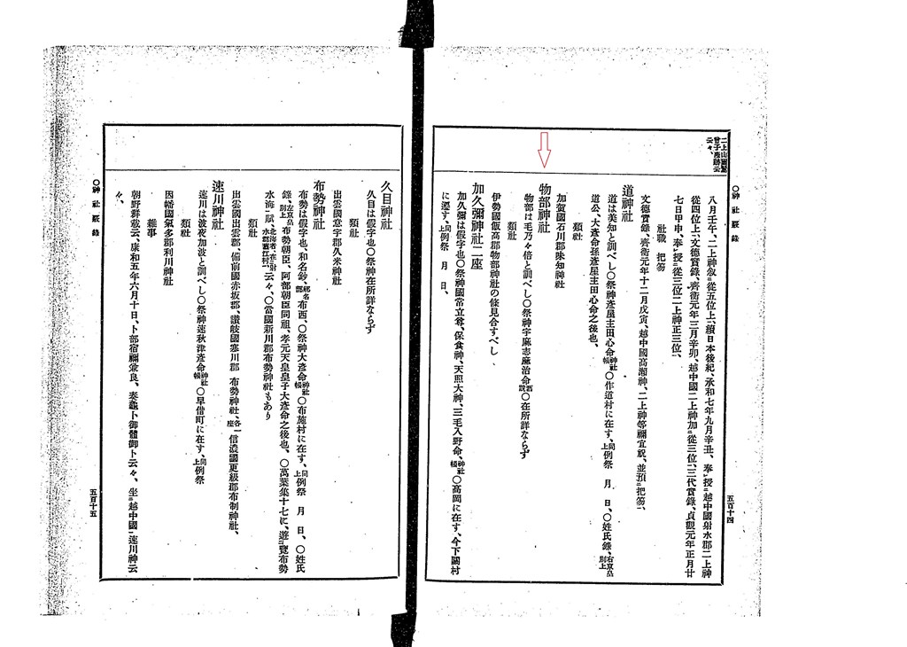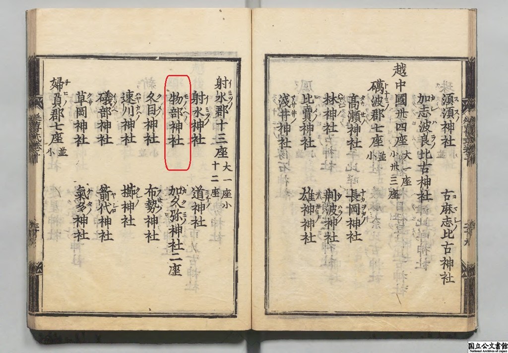 『延喜式神名帳(Engishiki Jimmeicho)』(927年12月編纂)に所載 「物部神社」の名称を持つ式内社の論社について