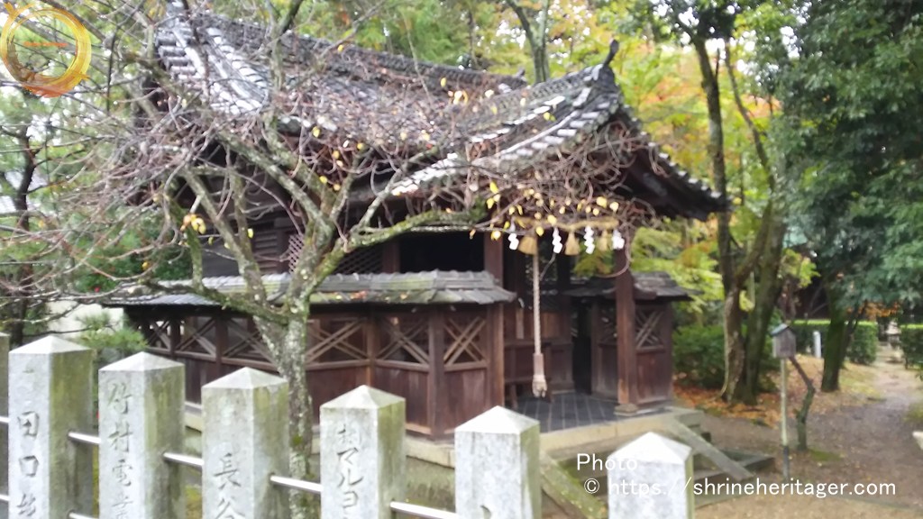 今按 明細帳に井之村とあるは本社の舊址にして今 向日町にありと云は 本社廢亡の後 向神社の相殿に迂し祭る所なりとぞ