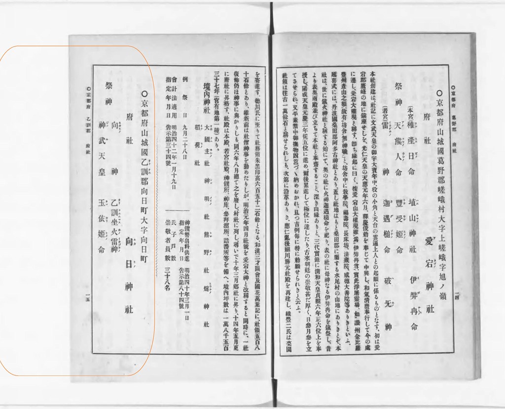 式内社 向神社について 所在は゛向日町 (乙訓郡向日町大字向日 )゛〈現 向日神社(向日市向日町北山)〉と記しています