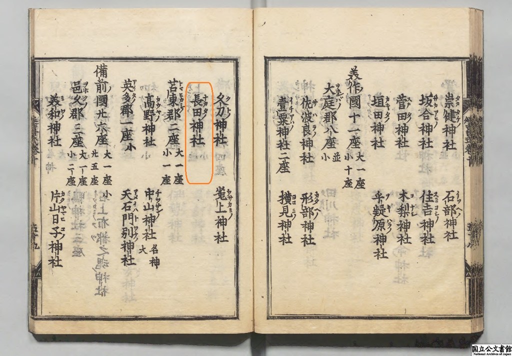 『延喜式神名帳』(927年12月編纂)に所載される「長田神社(なかたの かみのやしろ)」について