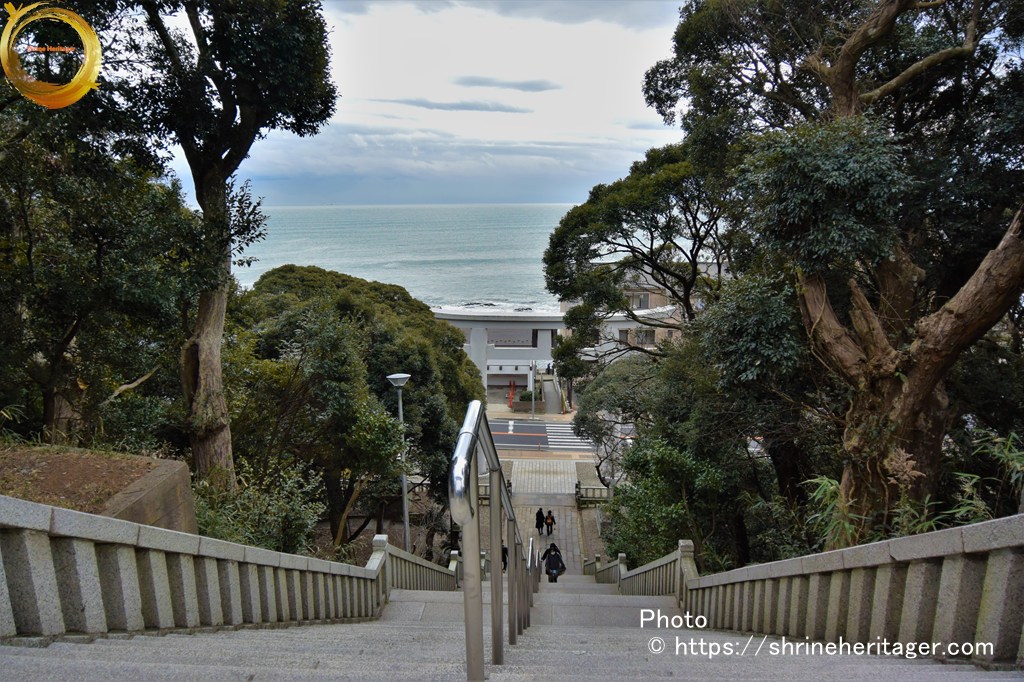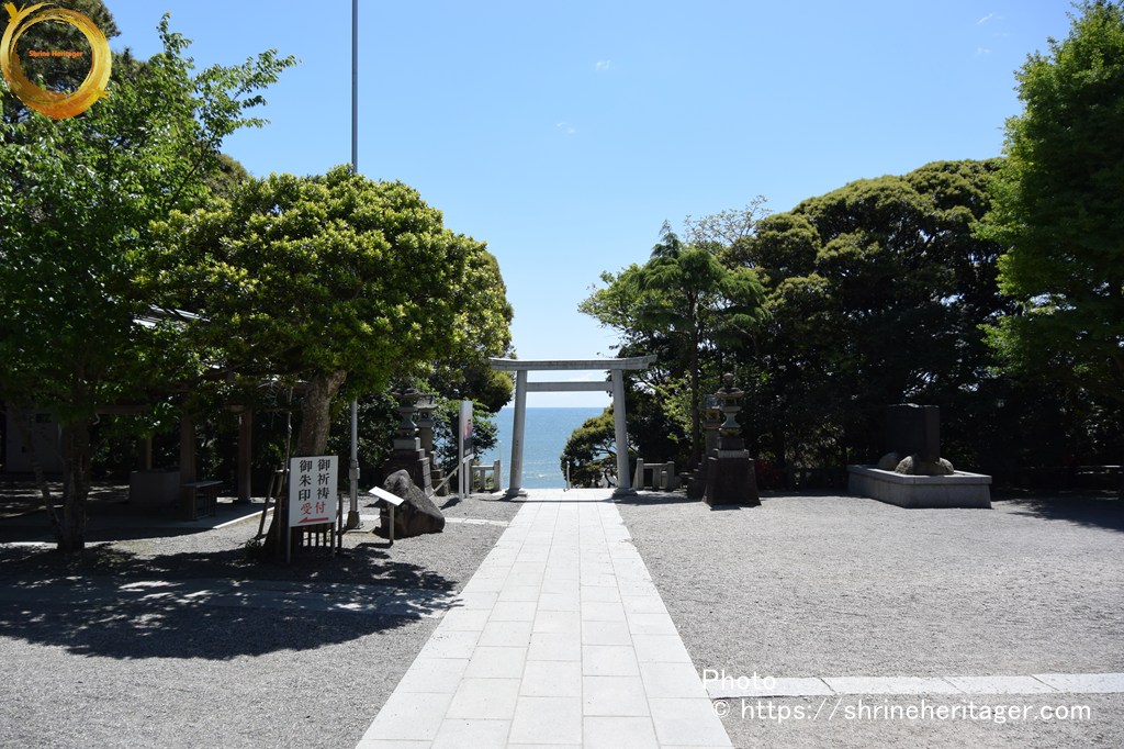 東南方向を向いている社殿 境内 参道があり 三の鳥居からは 太平洋を望めます