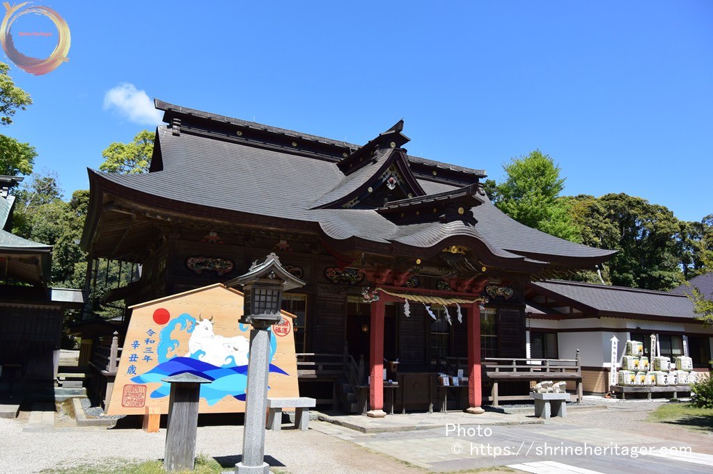 現在の社殿は元禄三年(1690)に水戸二代藩主の徳川光圀公が御造営の工を起し 次いで綱條公により御本殿 拝殿 神門等の建造を享保十五年(1730)に竣え 現在地に遷座 その社殿等は徳川初期を偲ぶに足る文化財としても貴重なもので茨城県文化財に指定されております