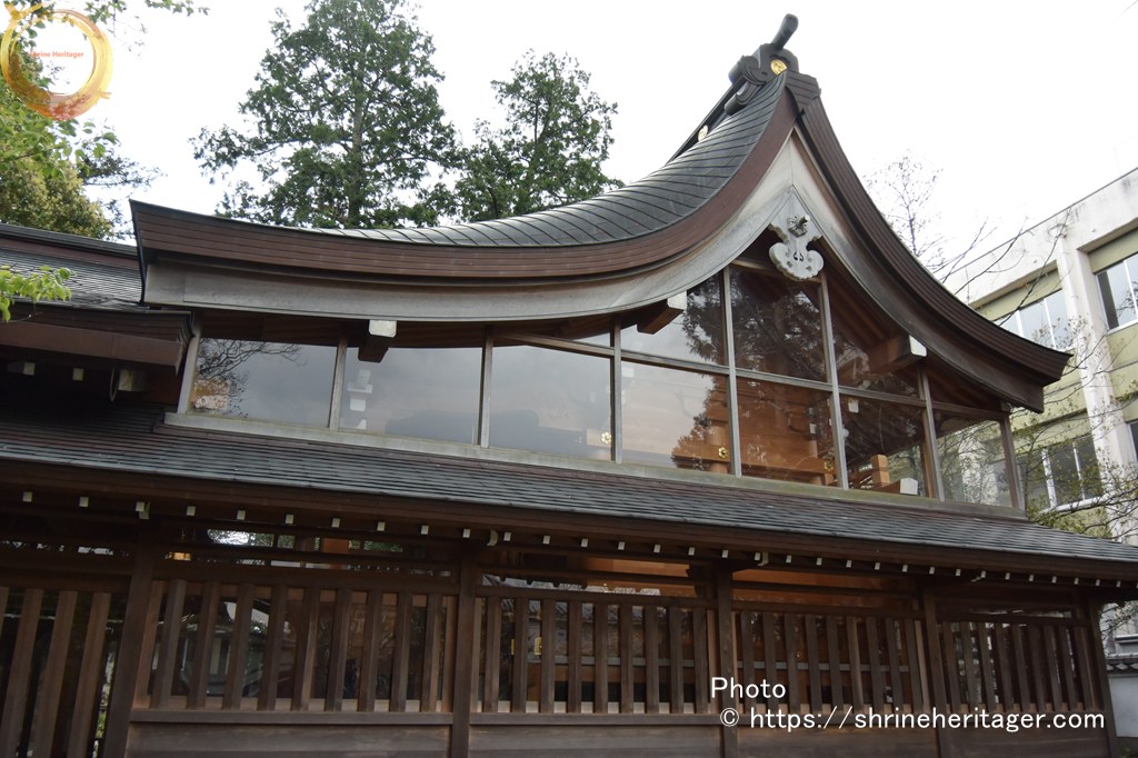 本殿はガラス張りの覆い屋の中に祀られています
