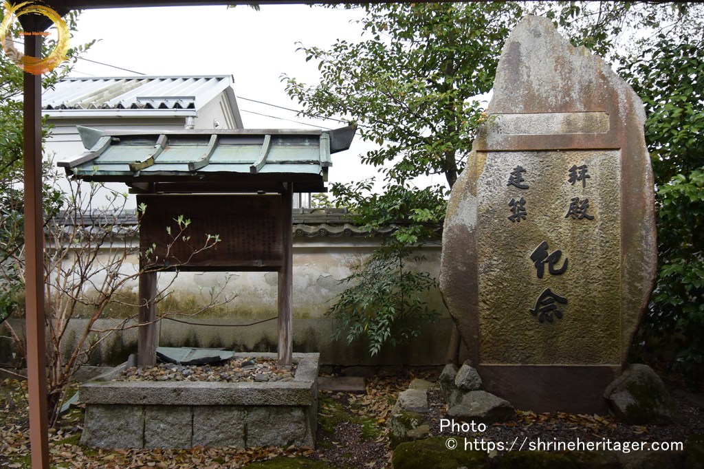 拝殿建築記念の石碑と 由緒書きがあります