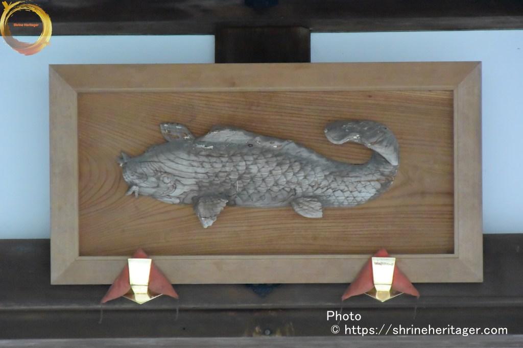 祭神 木俣命が大井川〈保津川〉を鯉に乗って上がってきたと伝えられていて 通称「鯉明神」といわれています。この地域ではでは鯉を神の使いと考えられ、鯉を食べず、鯉のぼりも揚げない風習が伝わっています