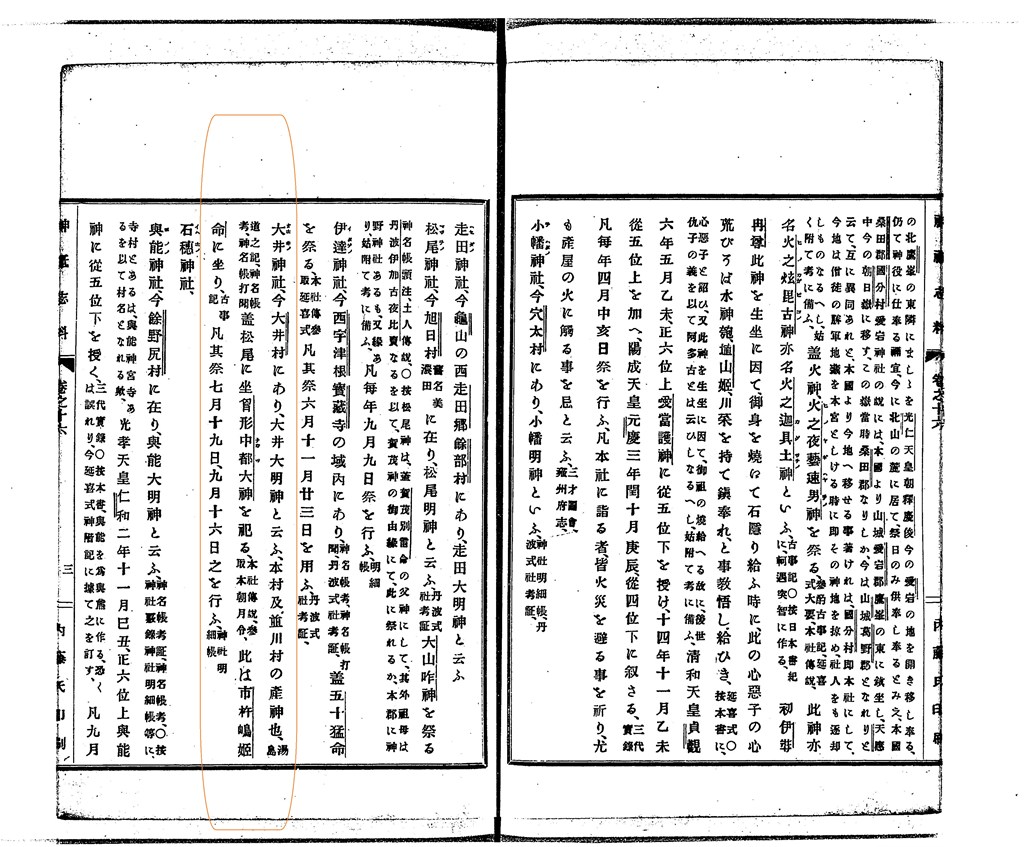凡其祭 七月十九日、九月十六日之を行ふ〔神社明細帳〕