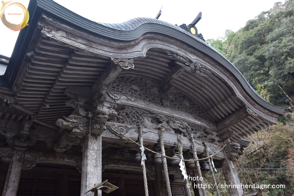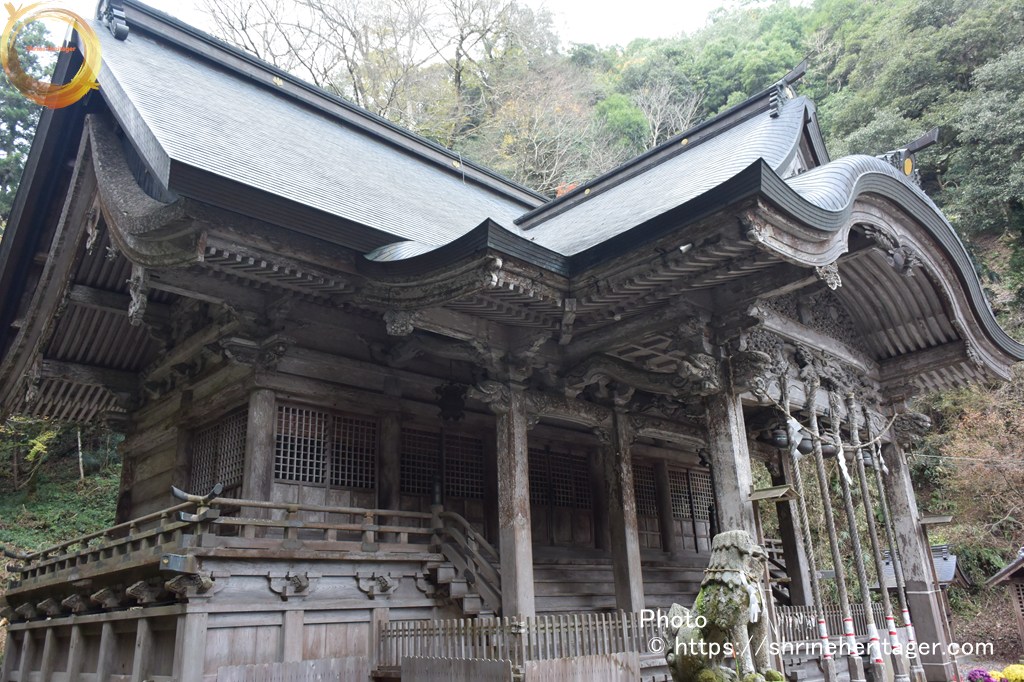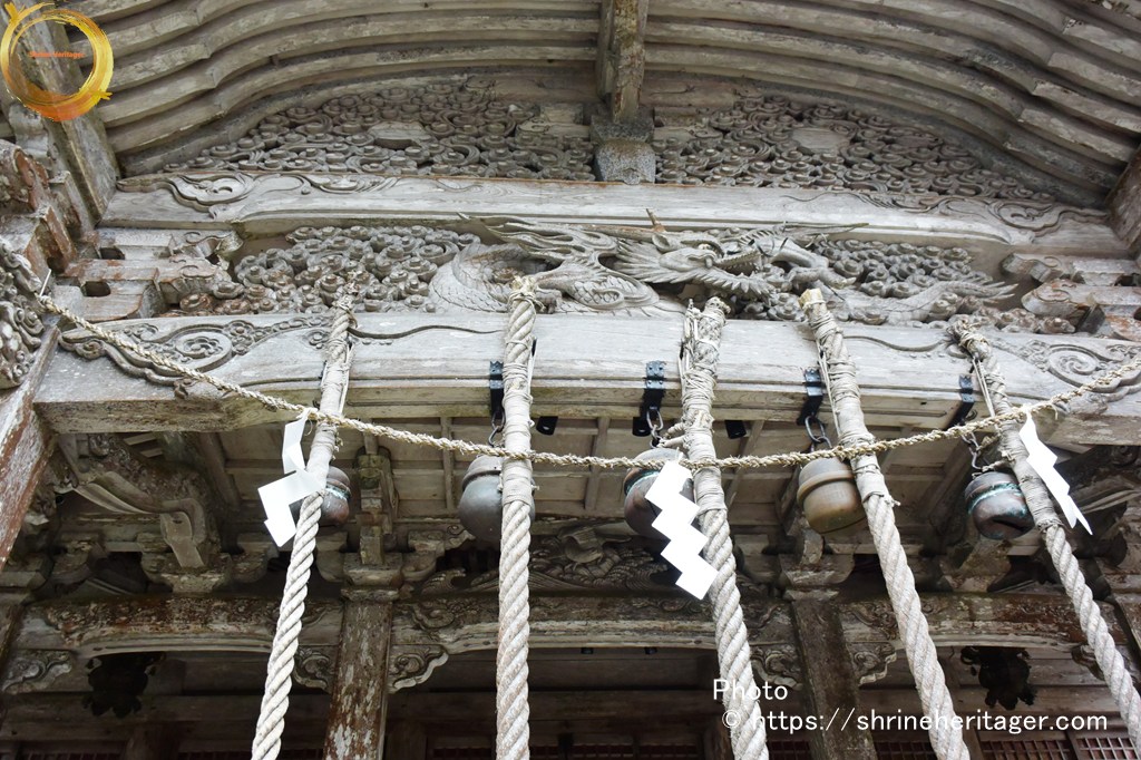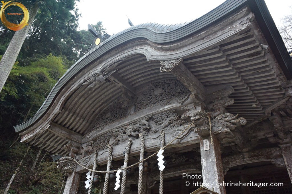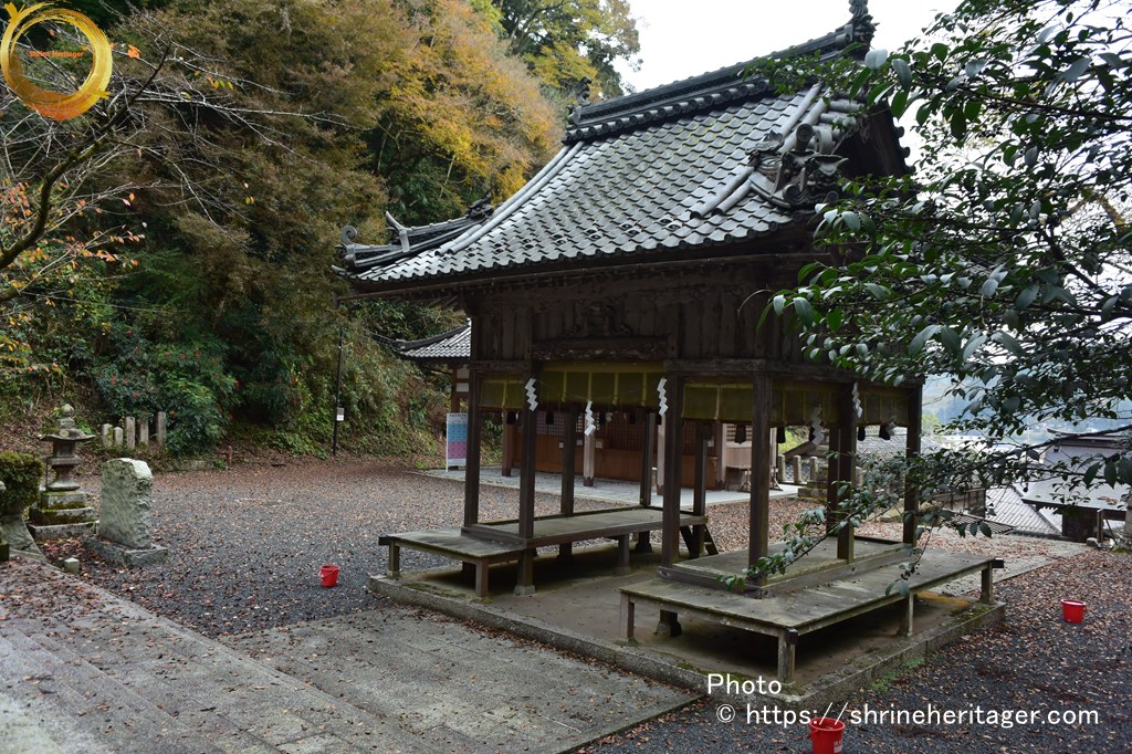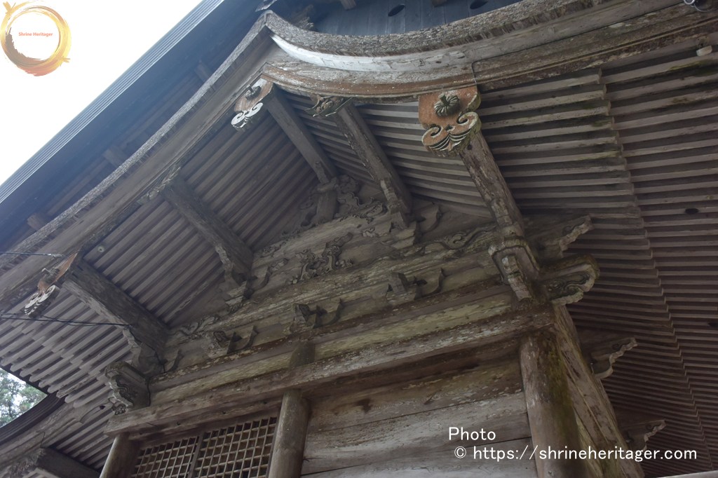主神は保食神・相殿には句々廼馳神(木神)・軻遇実智神(火神)・埴山姫神(土神)・金山彦神(金神)・罔象女神(水神)の五元神が祭祀されています。