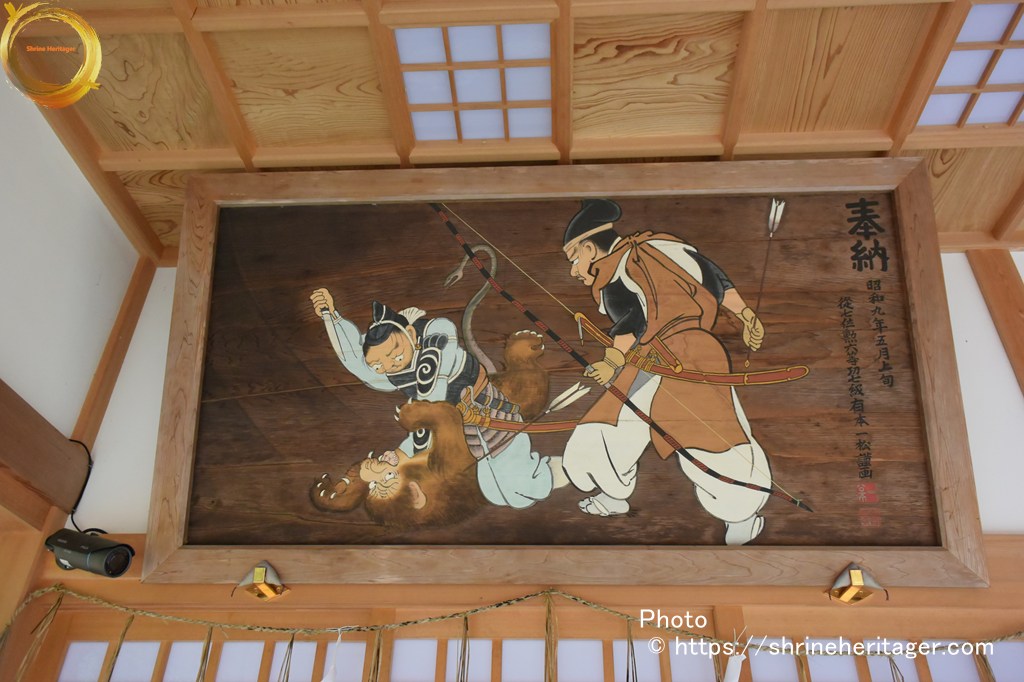 當社猪鹿ノ田ヲ傷フヲ愁ヒテ、此神ニ祈テ狼ヲ借ルト云コトアリ、其祈願ニ詣デ、歸ラヌ程ニ、既ニ其村ヘ狼來リ居ルユエ、猪鹿出ズ、カクテ其定メテ借クル日限ヲ スグレバ、ーツモ居ラズト云フ、