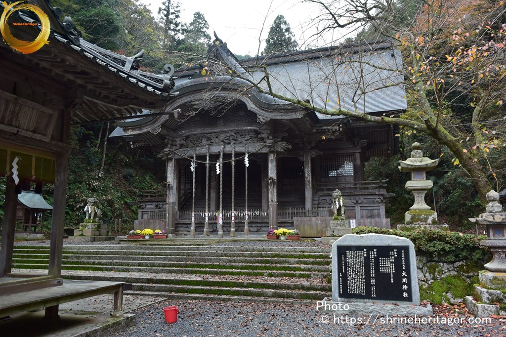 大川神社(おおかわじんじゃ)は 社伝に第23代顕宗天皇 乙丑年(485)3月23日に宮柱を立て鎮祭したところから始まったと云う由緒ある古社で 伝説も数多く残ります 『日本三代實録』大川神〈国史見在社〉・『延喜式』丹後國 加佐郡 大川神社〔名神大〕(おほかはの かみのやしろ)〈延喜式内 名神大社〉です