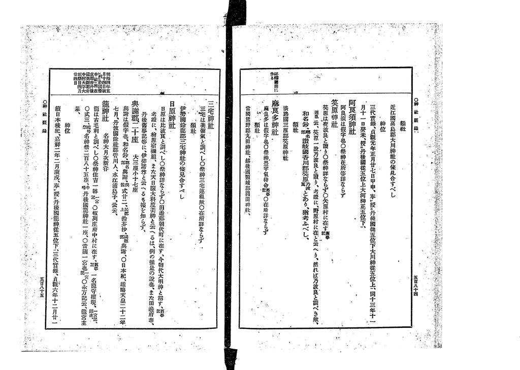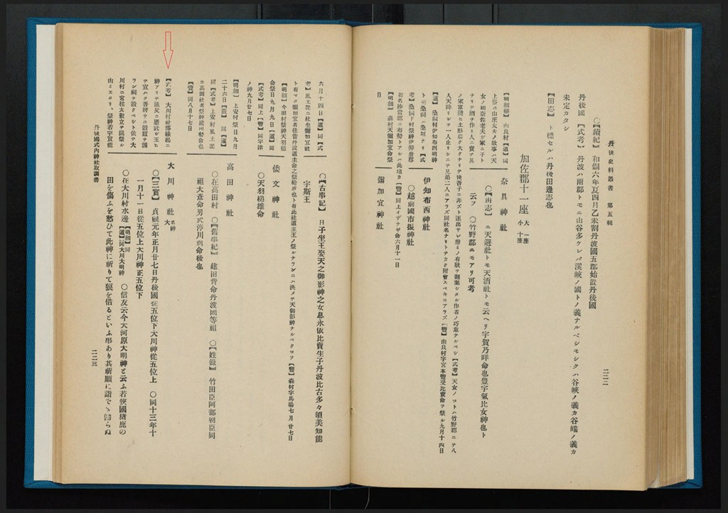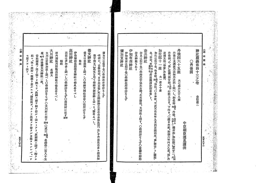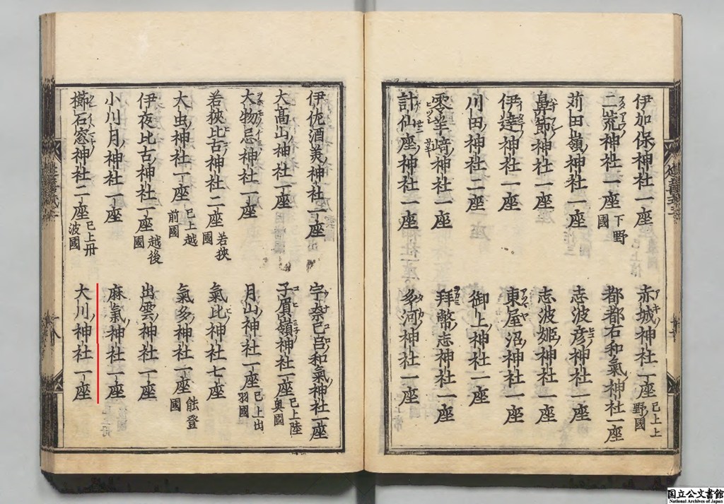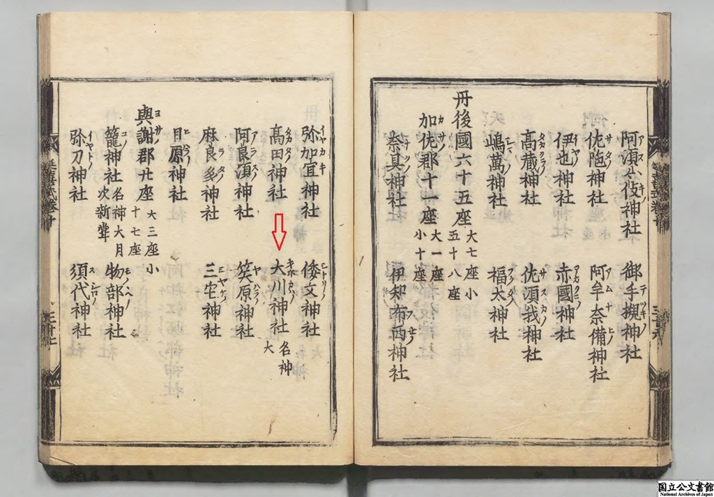 〇式三、〔臨時祭〕名神祭二百八十五座、〔中略〕丹後國大川神社一座、