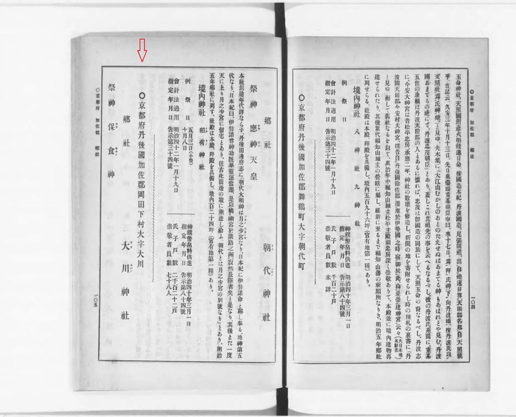 社格 郷社(府社)所在 大川村字徹光山(加佐郡岡田下村大字大川)