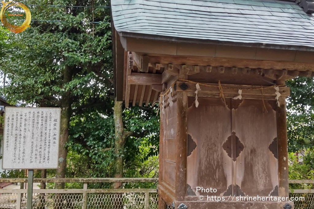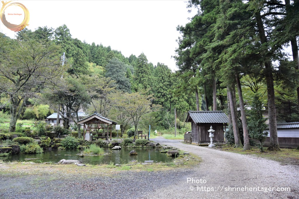建物は本殿、拝殿、幣殿、神饌所、社務所、神庫、手洗舍、廻廊を有し、境内六百十二坪(官有地第一種)にして、第一第二第三と島居相竝び、社内數百年を経たる老欅老杉蒼茂し、社前に宮川の清流淡々として流れ、其幽邃佳勝言に盡す可からず、