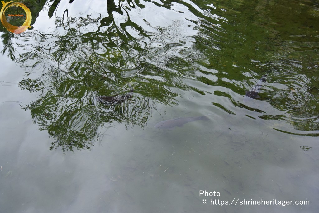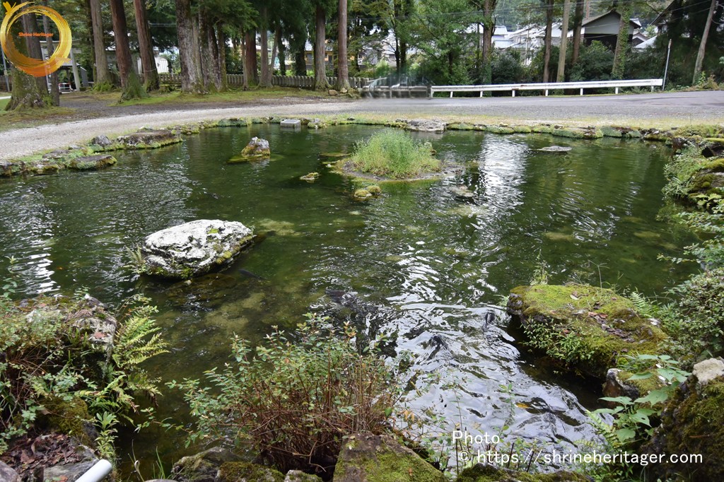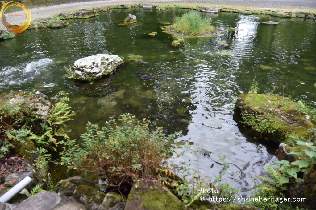 社殿の向かって左手には゛石神の湧水゛を引き込んだ池があります