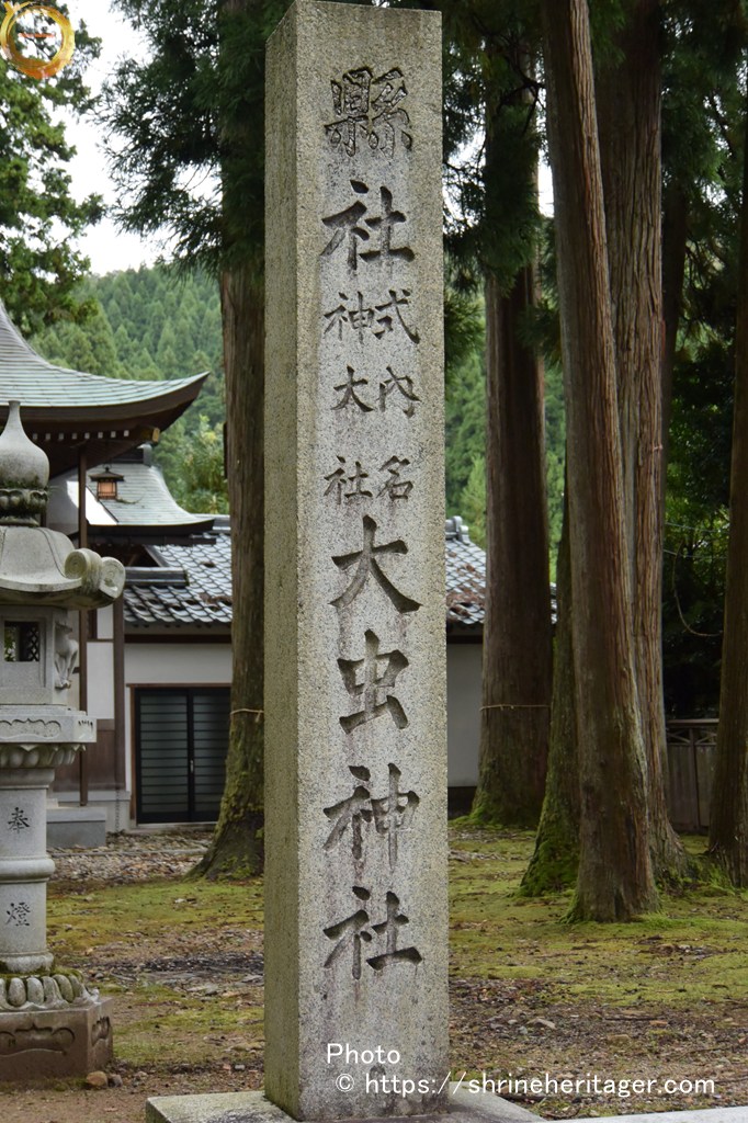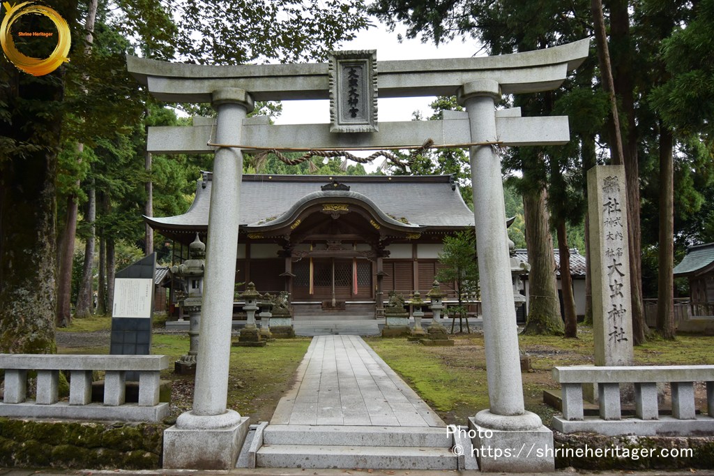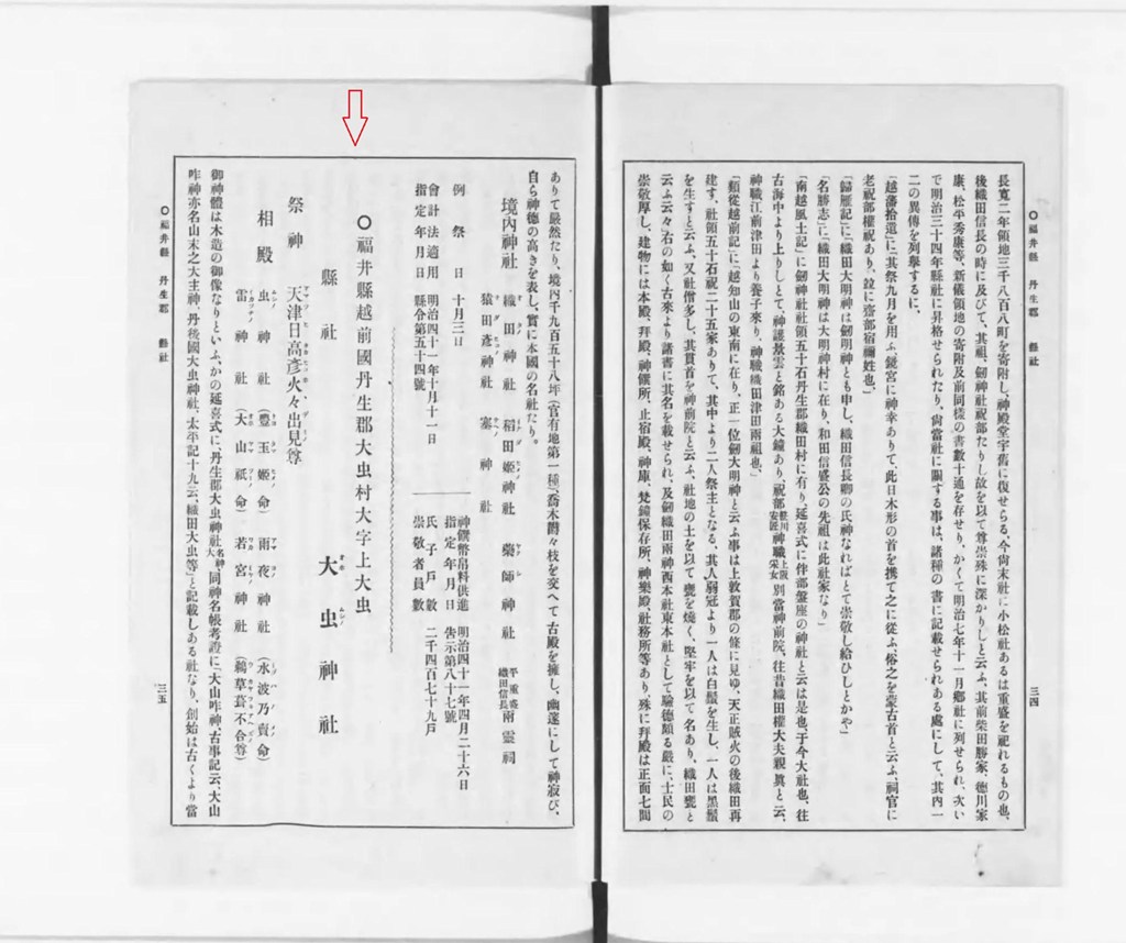 社格 (明細帳に縣社 大虫神社と相殿)(縣社)所在 上大虫村〔大虫神社相殿〕(丹生郡大虫村大字大虫 縣社 大虫神社内)